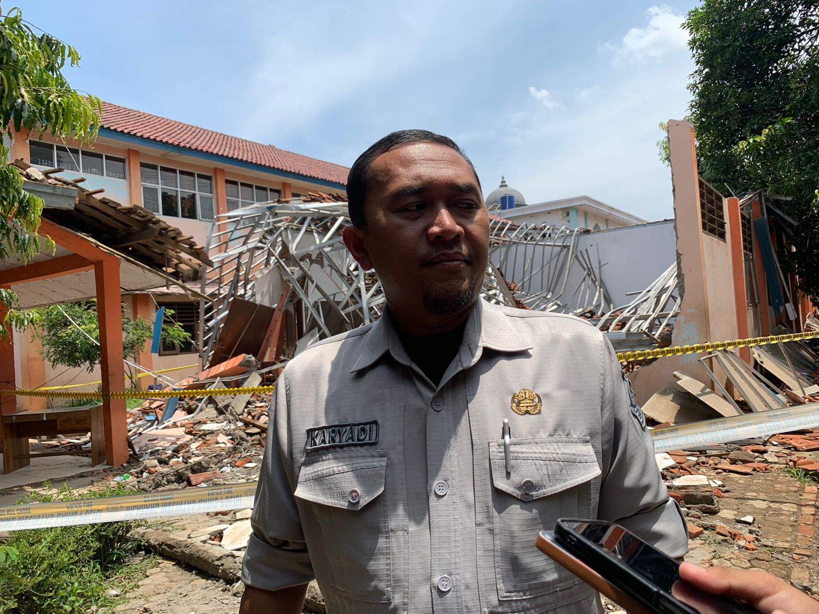 Peristiwa itu sendiri terjadi sekitar pukul 14.40 WIB ketika hujan deras disertai angin kencang menyebabkan pohon tumbang menimpa atap ruang kelas.
