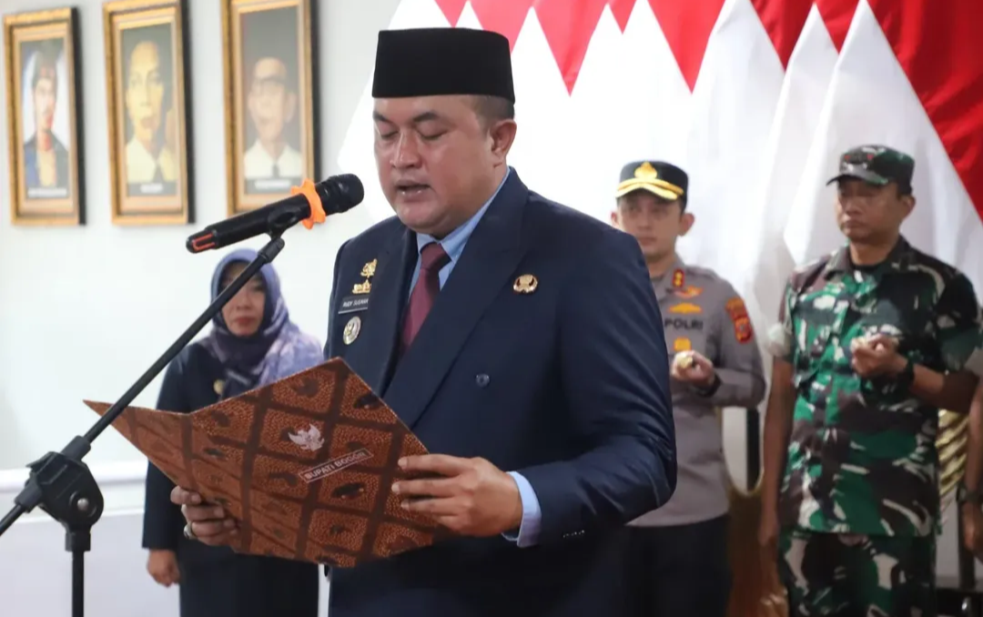 Beritabogor24jam – Bupati Bogor, Rudy Susmanto, S.Si., hari ini resmi melantik dan mengambil sumpah jabatan 25 pejabat di lingkungan Pemerintah Kabupaten Bogor. Upacara pelantikan berlangsung khidmat di Kantor Badan Kepegawaian dan Pengembangan Sumber Daya Manusia (BKPSDM) Kabupaten Bogor.