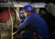 Tim harus menurunkan peralatan secara presisi untuk menjangkau posisi kucing yang terlihat ketakutan dan stres akibat terperangkap.